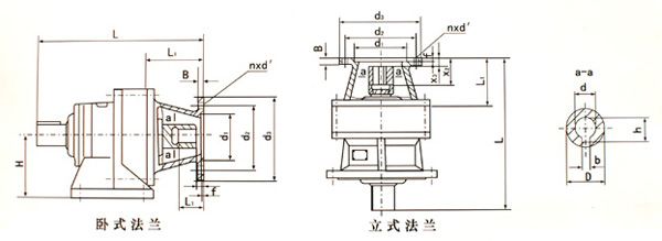 尺寸系列 機(jī)型號(hào) | 電動(dòng)機(jī) 功率KW | 電動(dòng)機(jī) 機(jī)座號(hào) | L | L1 | H | B | f | d1(公差) | d2 | d3 | d(公差) | D | h | b | nxd | |||